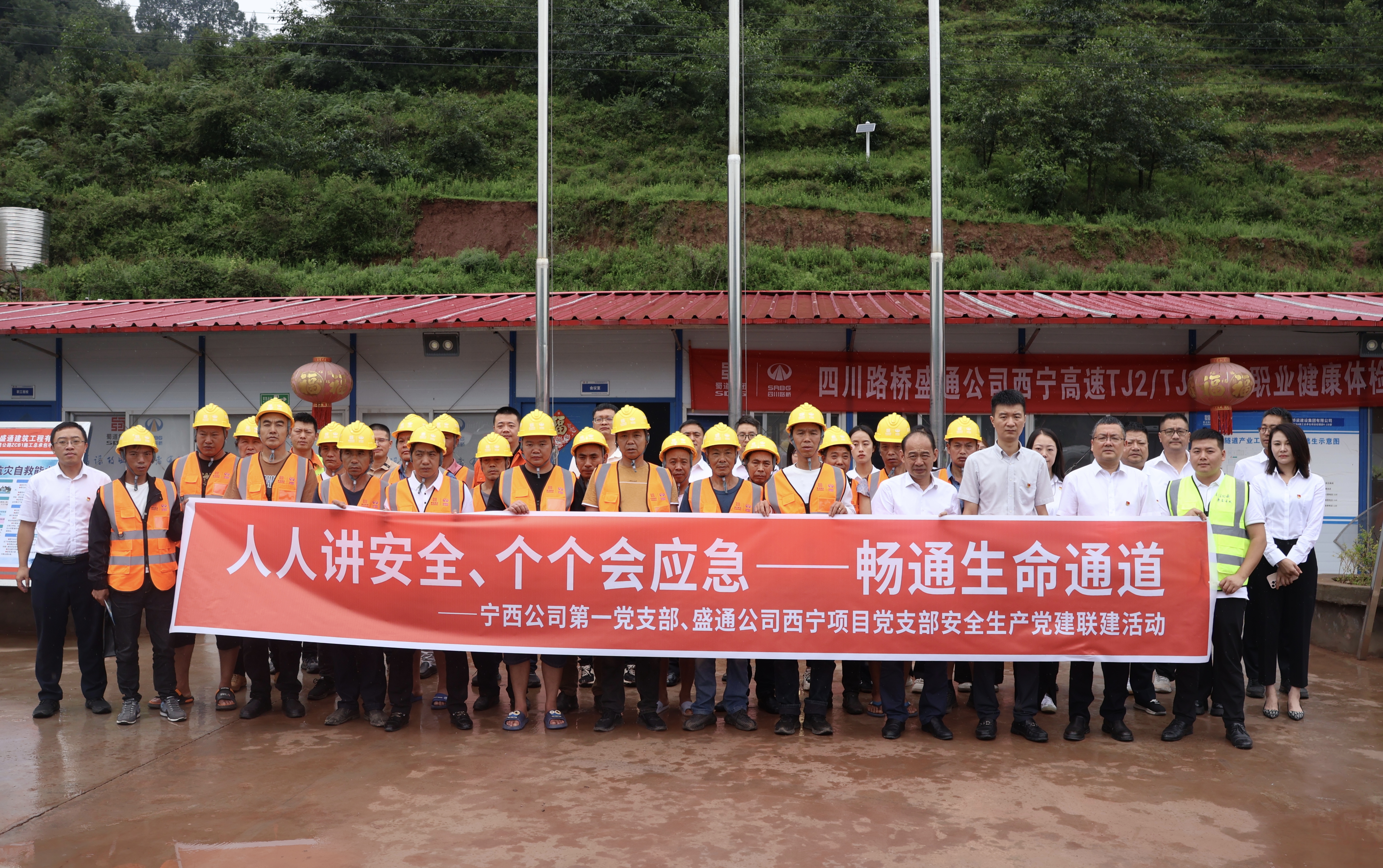 为全面落实新时代党的建设总要求,促进党建工作与业务工作有效融合,进一步加强对西宁高速项目领导,7月25日,宁西公司第一党支部、西宁高速西昌联合临时党总支开展“人人讲安全、个个会应急——畅通生命通道”安全生产党建联建活动。宁西公司党委委员、董事、副总经理王龙,党委委员、职工董事、工会主席、副总经理岳鹏参加活动并讲话。