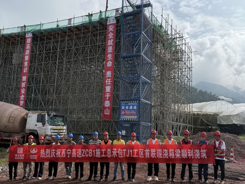 8月17日,西宁高速ZCB1-TJ1标段西昌东枢纽互通首联箱梁顺利浇筑,标志着西昌东枢纽互通正式进入了桥梁上部结构施工阶段。