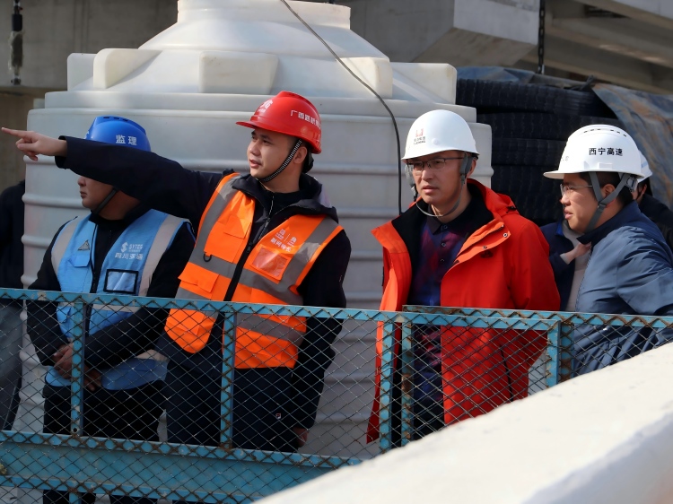 雷良一行深入施工现场,重点对高墩大跨特殊结构桥梁、高边坡、不良地质隧道、枢纽互通等重点区域进行了全面检查。重点检查安全防护措施、施工质量进度、特种设备运行状况及应急方案等执行情况,并对各标段征拆堵点进行调研。