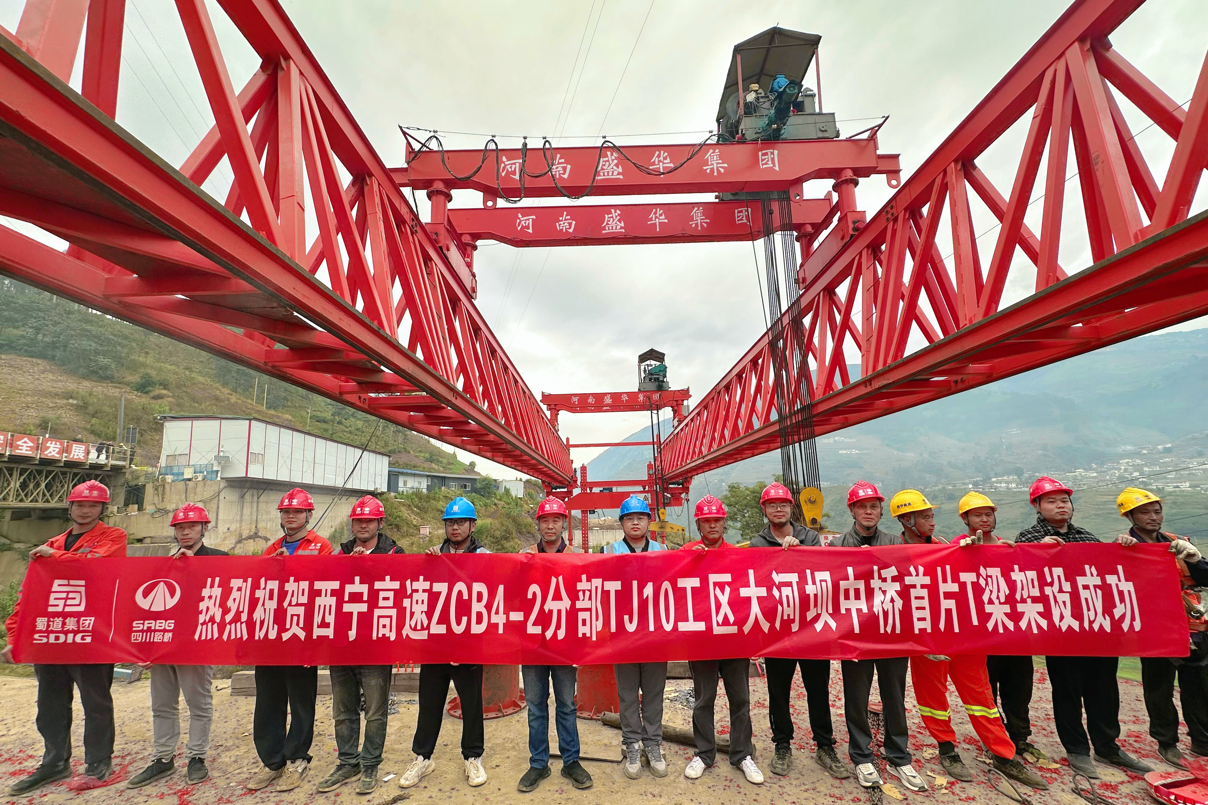 本次架设的首片T梁位于TJ10工区内的大河坝中桥右幅第一跨,梁长25米,高1.75米,重约66.9吨,采用180吨自平衡架桥机实施架设。大河坝中桥全长79.64米,为预应力混凝土(后张)简支T梁桥,全桥共需预制梁片20片。